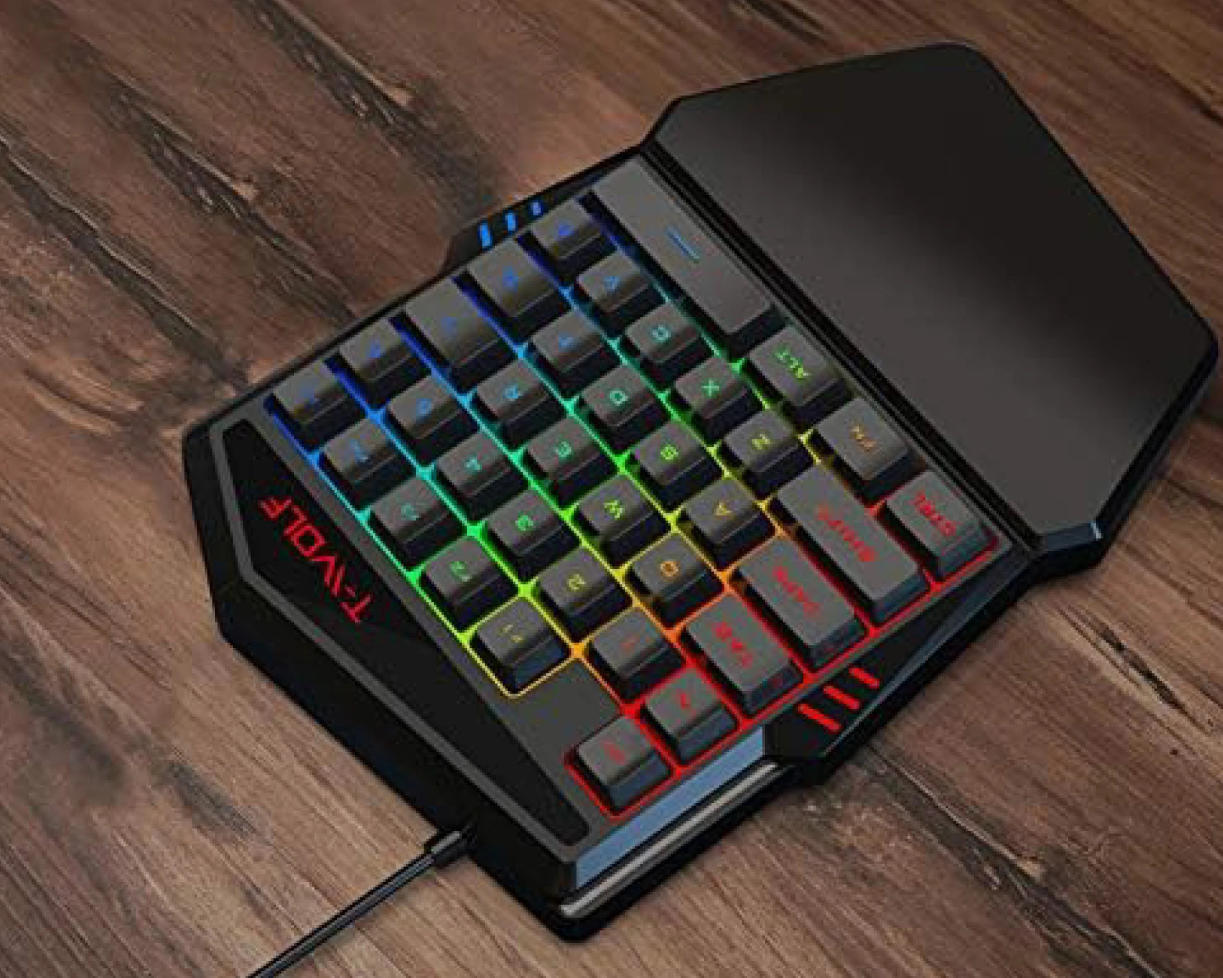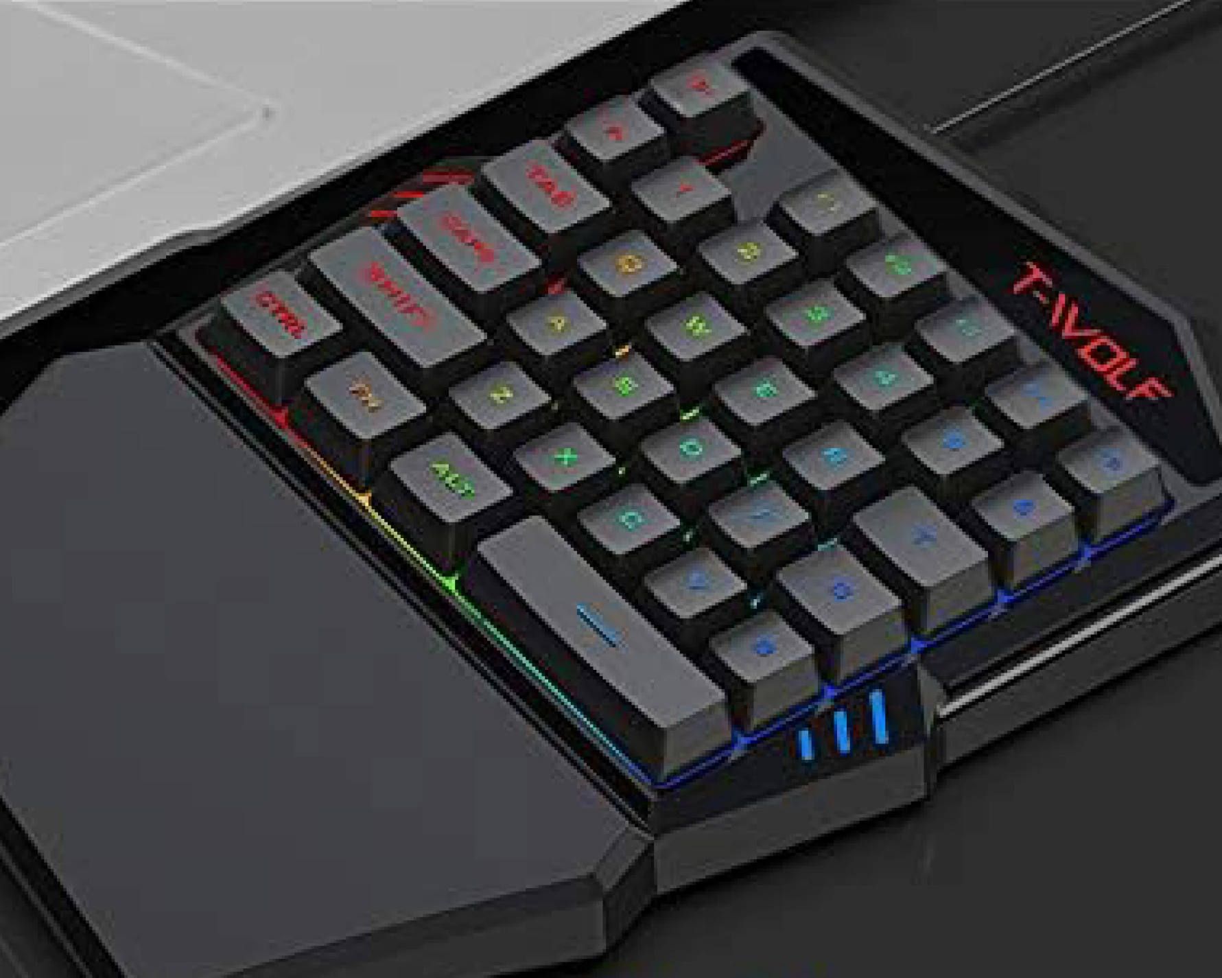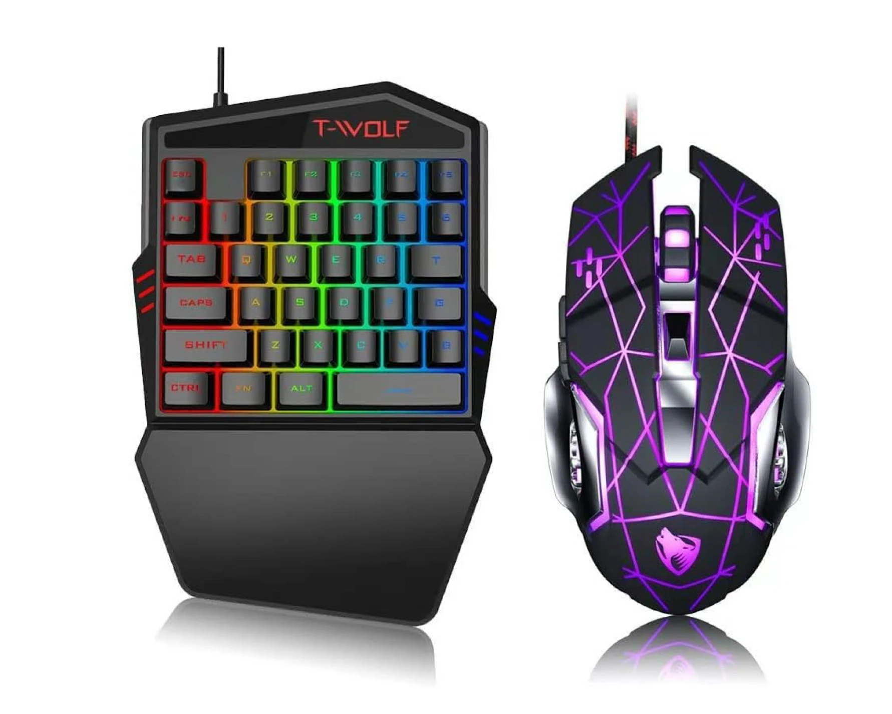 🎮⚡ Kit Gamer TF900 | Precisión, Estilo y Rendimiento en un Solo SetDiseñado para elevar tu experiencia de juego con control total, iluminación RGB y conectividad versátil. Ideal para gamers que buscan rendimiento y estética en cada partida. ✨ Descripción del productoEl Kit Gamer TF900 incluye tres componentes esenciales para cualquier jugador: un teclado mecánico de una sola mano, un mouse ergonómico con iluminación RGB y un adaptador USB para conexión universal. El teclado cuenta con 35 teclas retroiluminadas, optimizadas para juegos FPS y MOBA, mientras que el mouse ofrece precisión y velocidad con diseño cómodo y efectos visuales. El adaptador permite conectar ambos periféricos a consolas o dispositivos compatibles, ampliando la experiencia de juego más allá del PC. ✅ Ventajas del producto
