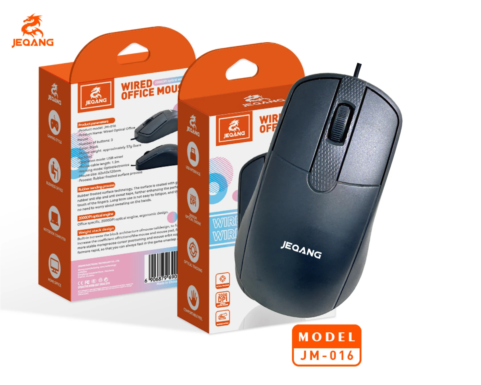🖱️💼 JM-016 – Mouse Alámbrico Ergonómico para Oficina | Precisión Óptica y Diseño CómodoDiseñado para largas jornadas laborales, estudio o uso doméstico con rendimiento confiable y agarre cómodo El JM-016 de JEQANG es un mouse alámbrico con diseño ergonómico, sensor óptico de alta resolución y estructura duradera. Su conectividad USB plug & play lo hace compatible con cualquier computadora sin necesidad de instalar drivers. Ideal para oficinas, centros educativos o uso personal, este modelo combina funcionalidad con confort. ✨ Beneficios del producto