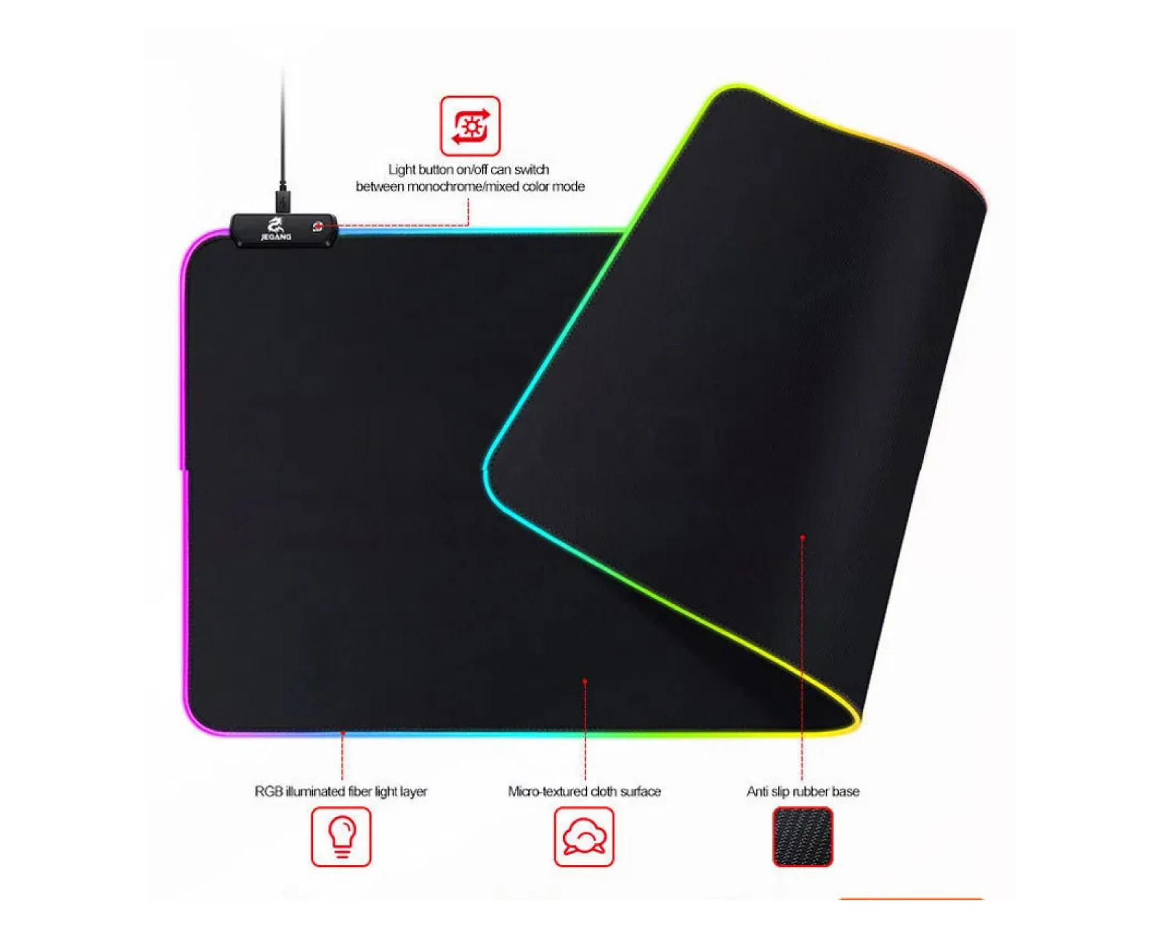 🌟 ¿Por qué elegir el JK-113?Porque te ofrece comodidad, precisión y estilo visual en un solo accesorio. Es el mouse pad perfecto para quienes quieren destacar en cada partida o jornada laboral. JK-113: tu espacio de juego, iluminado con estilo.