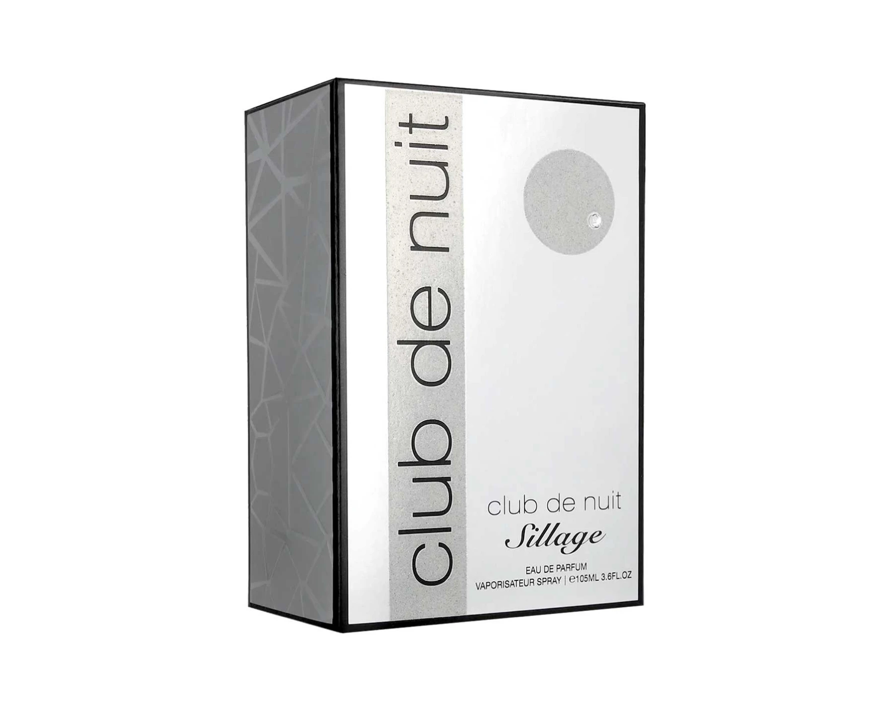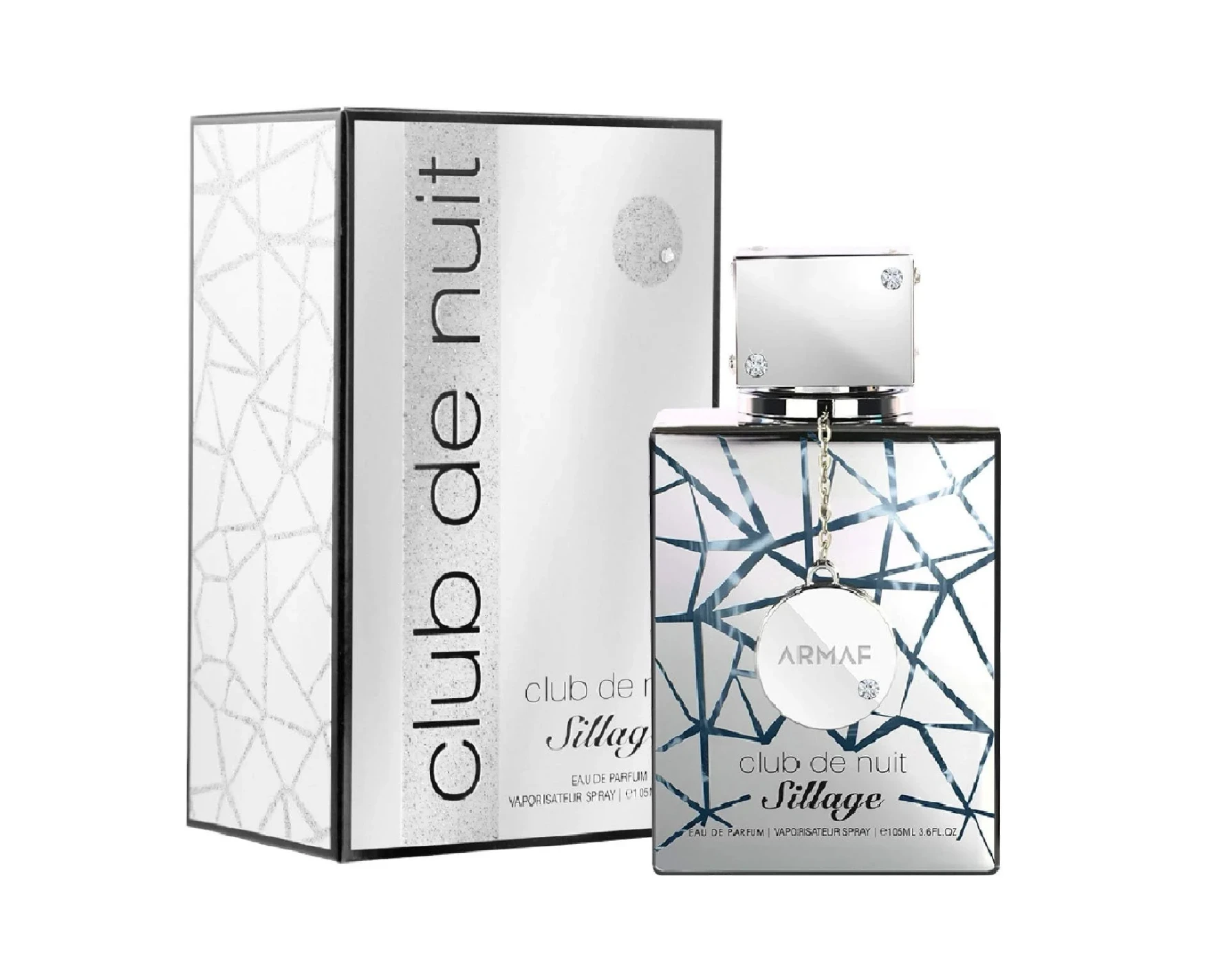 🌬️💎 Perfume Club de Nuit Sillage 105ml | Eau de Parfum Unisex | ArmafUna fragancia luminosa y poderosa que combina cítricos, flores blancas y almizcles con un fondo sofisticado Club de Nuit Sillage es parte de la línea de alto impacto de Armaf, reconocida por sus perfumes con excelente fijación y estética llamativa. Este Eau de Parfum de 105ml se presenta en un frasco plateado con detalles geométricos y medallón decorativo, reflejando modernidad y lujo. Su aroma está inspirado en fragancias nicho, ideal para quienes desean destacar con estilo. ✨ Pirámide Olfativa