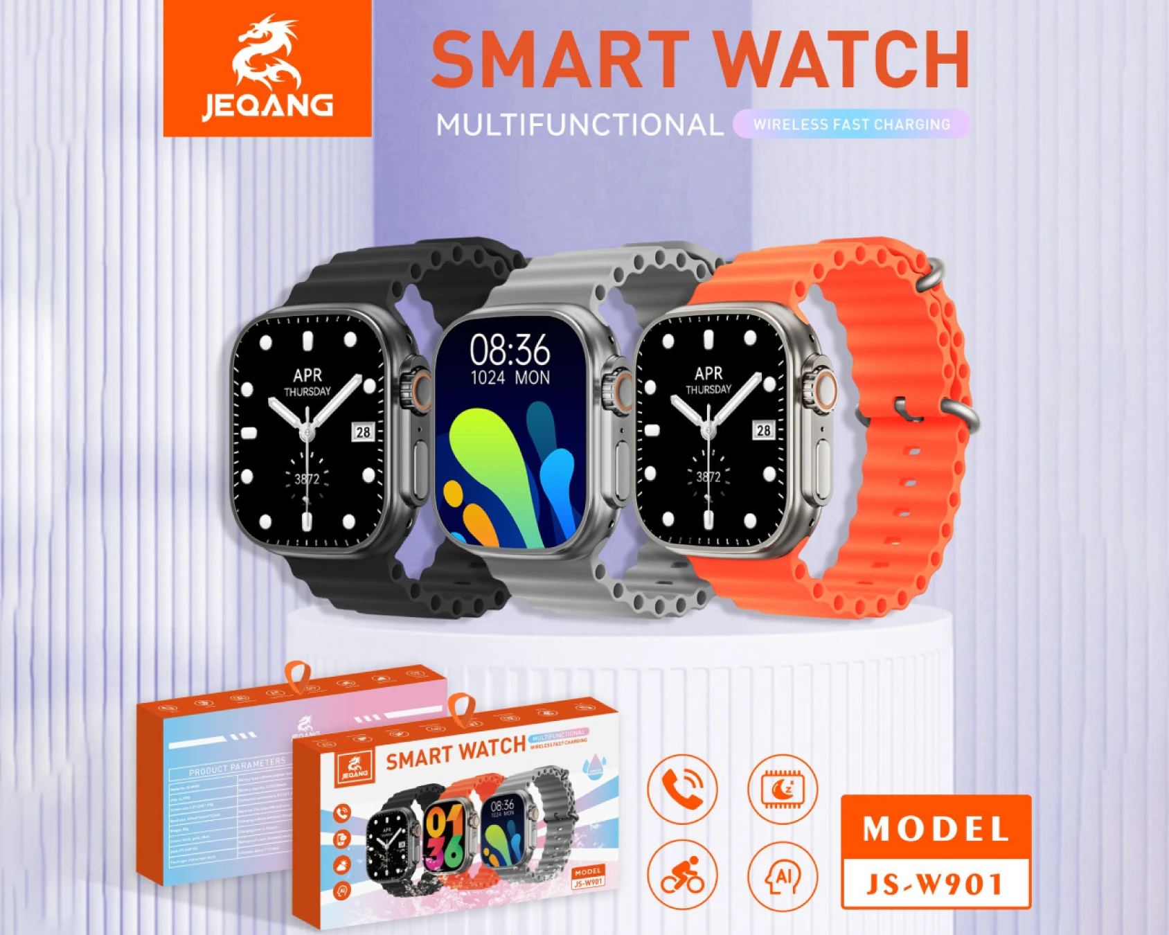 ⌚🔥 Smart Watch JS-W901 – Reloj Inteligente Multifuncional con Carga Rápida Inalámbrica | Salud, Deporte y Conectividad TotalTecnología accesible, diseño moderno y funciones que te acompañan en cada momento El JS-W901 de la marca JEOANG es un reloj inteligente multifuncional que combina estilo y rendimiento. Equipado con pantalla táctil a color, carga rápida inalámbrica, y funciones avanzadas como monitoreo de salud, modo deportivo, control multimedia y notificaciones inteligentes, este smartwatch se convierte en tu asistente personal desde la muñeca. ✨ Beneficios del producto